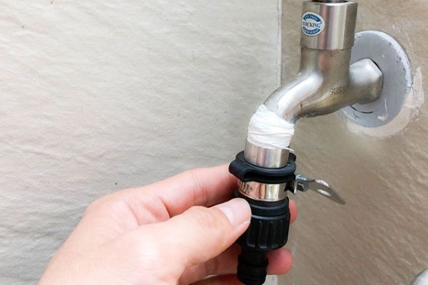 Bước 4: Thực hiện lắp đặt đầu vòi, dây cấp nước vào đường ống dẫn nước