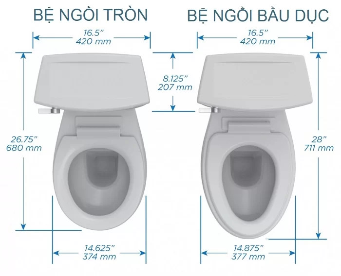 Có hai kiểu bệ ngồi bồn cầu phổ biến nhất hiện nay là bệ ngồi hình bầu dục (hình elip) hoặc hình tròn. Trong đó, bệ ngồi bồn cầu bầu dục mang lại cảm giác thoải mái khi ngồi vì có diện tích bề mặt lớn hơn những loại bồn cầu có hình khối khác. Tuy nhiên, với thiết kế này thường có yêu cầu không gian nhà tắm rộng rãi, thoáng đãng hơn so với bệ ngồi tròn. Vì vậy, đối với phòng tắm hẹp, bệ ngồi hình tròn sẽ là sự lựa chọn phù hợp.