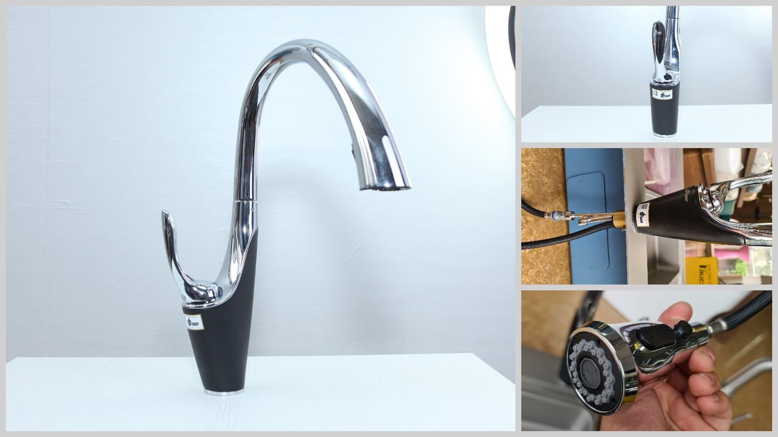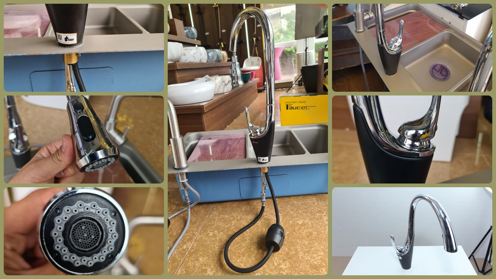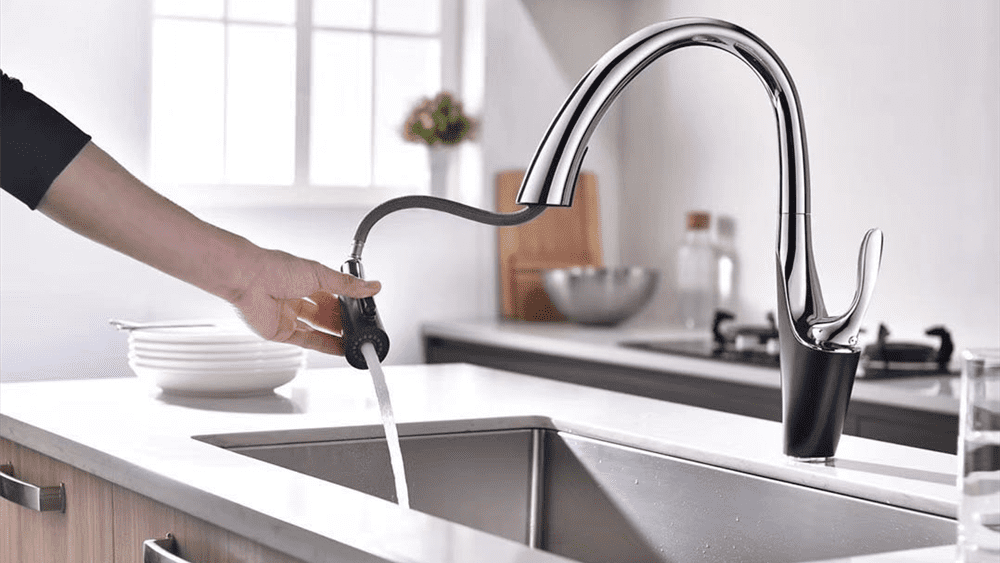 - Kéo đầu vòi ra để sử dụng tính năng dây rút.