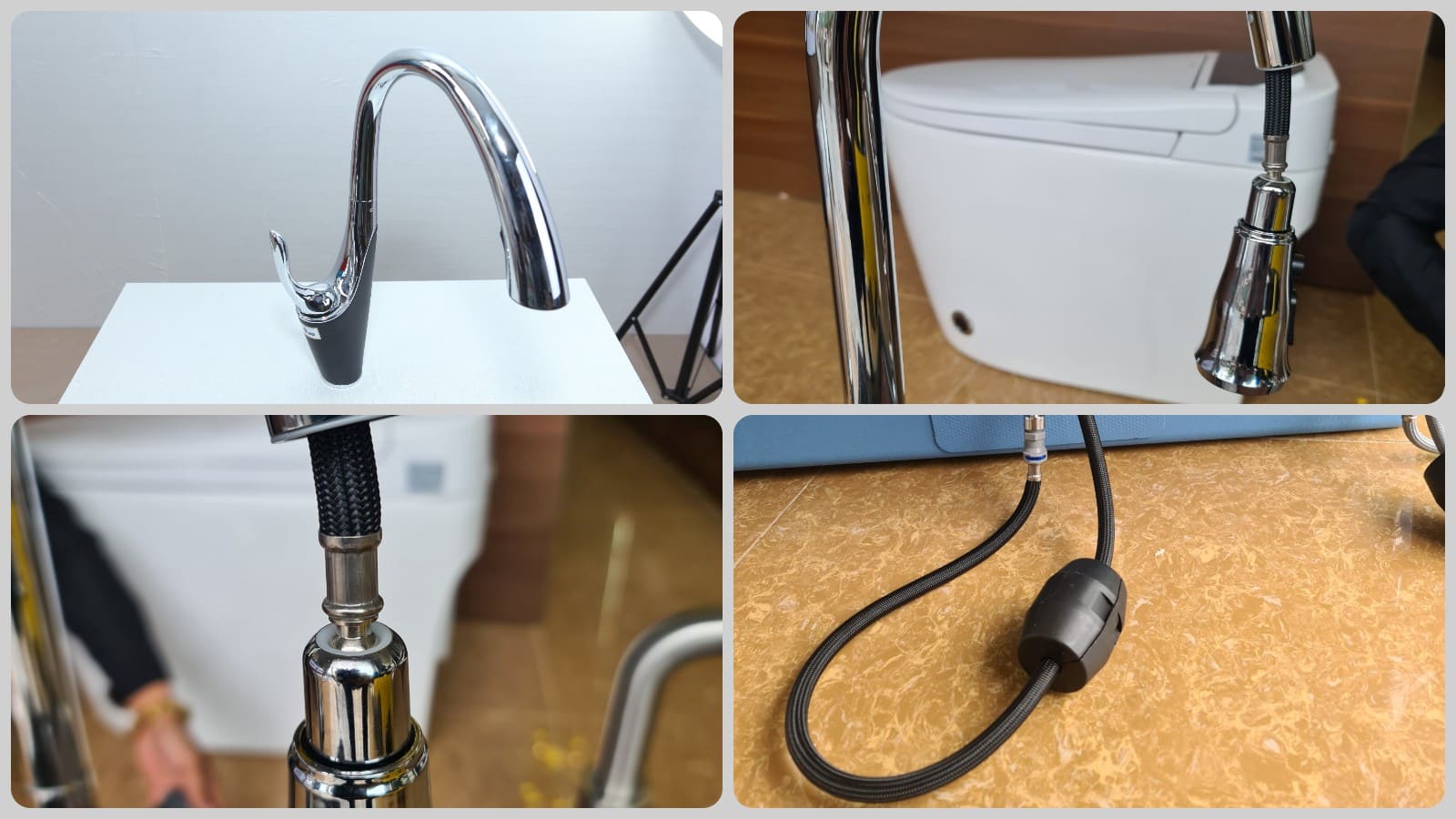 - Thân vòi, đầu vòi, dây cấp hòa trộn được nhà sản xuất tích hợp sẵn