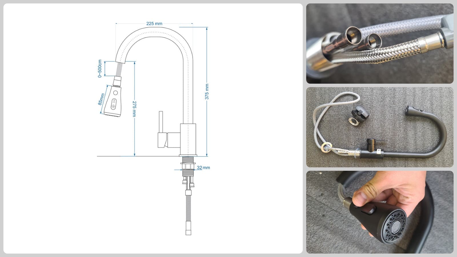 - Kéo đầu vòi ra để sử dụng tính năng dây rút.